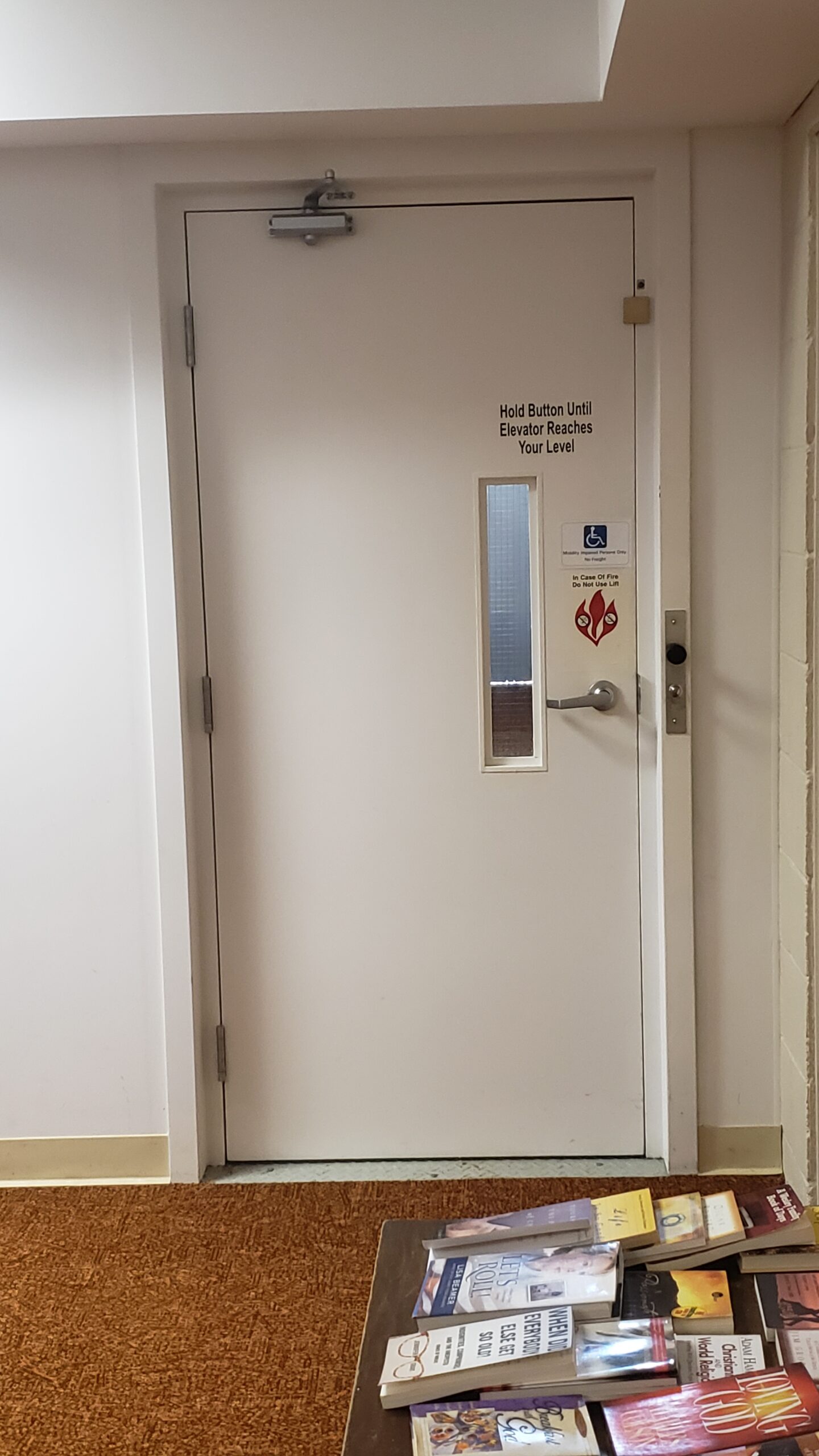 Elevator entrance on East side of building.
