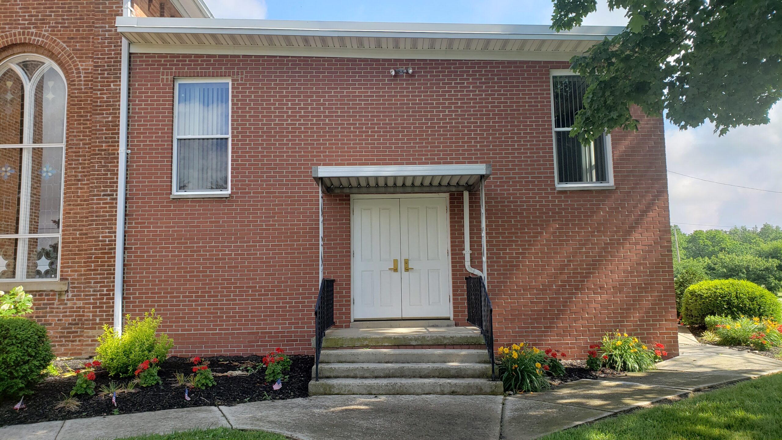 There are two front entrances on Center Street. On the left (West) is the main entrance to the sanctuary.